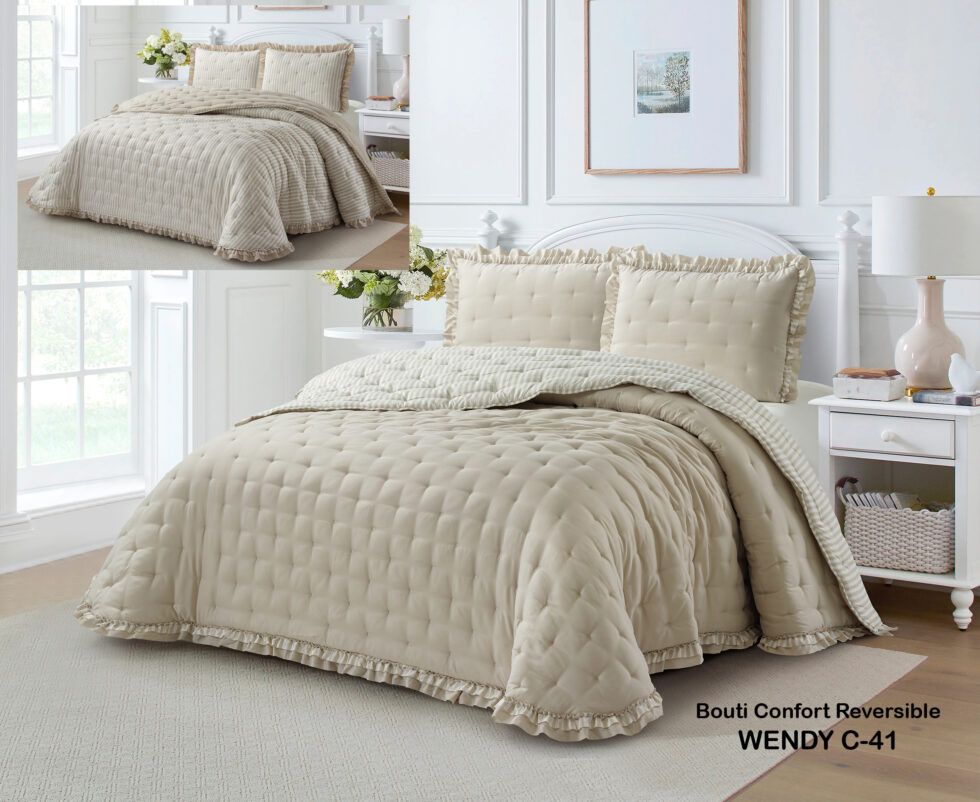 Comforter Sherpa Wendy de Dolz . Sherpa con volante, con diseño elegante. Tacto suave y acogedor. Ideal para el invierno.